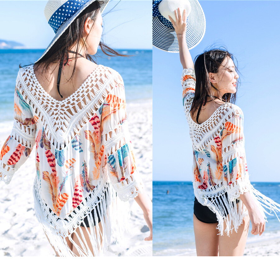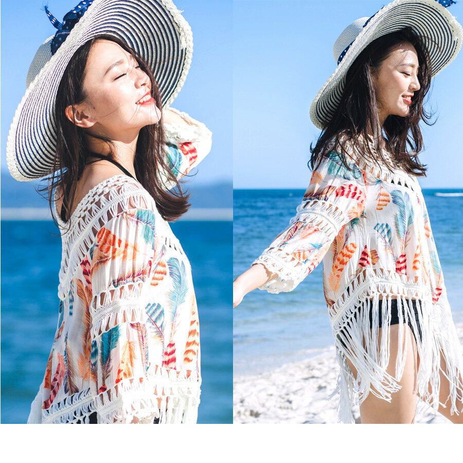 クロシェ編みとフリンジがオシャレなビーチカバーアップ♪