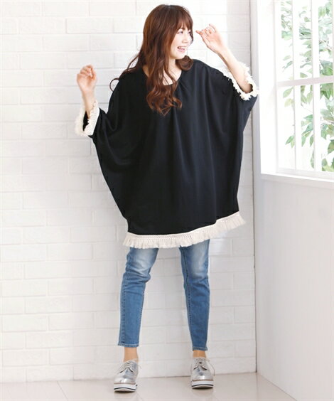 他のサイズは以下をご覧ください LL/3L はこちら 8L/10L はこちらフリンジ使いプルオーバー ニッセン nissen 黒 ベージュ カラー 黒/ベージュ サイズ 4L/5L/6L 素材 品質=[本体]ポリエステル100%(カットソー ミニ裏毛) [フリンジ部]綿100% 両脇スリット 原産国 中国製 メーカー品番 ZZY4319A3424 コメント みんな大好きドルマンプルオーバーにフリンジをプラス♪